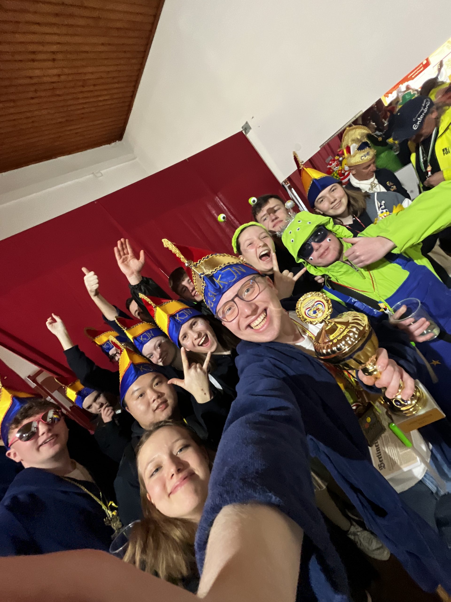 Nach dem Umzug haben wir noch einen Pokal als Auszeichnung für unsere Fußgruppe bekommen. Zum ersten Mal sind wir im Anschluss mit dem Carneval Verein Entenbrüder zum Nackenheimer Seniorenwohnheim gelaufen, um mit den Bewohner:innen und Mitarbeiter:innen anzustoßen, zu singen und zu lachen.