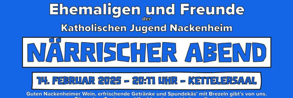 Zum Dank für 77 Jahre KJN-Fastnacht lädt die Katholische Jugend alle Ehemaligen und Freunde zu einem ganz besonderen Närrischen Abend ein In geselliger Runde wollen wir alte Zeiten wieder aufleben …