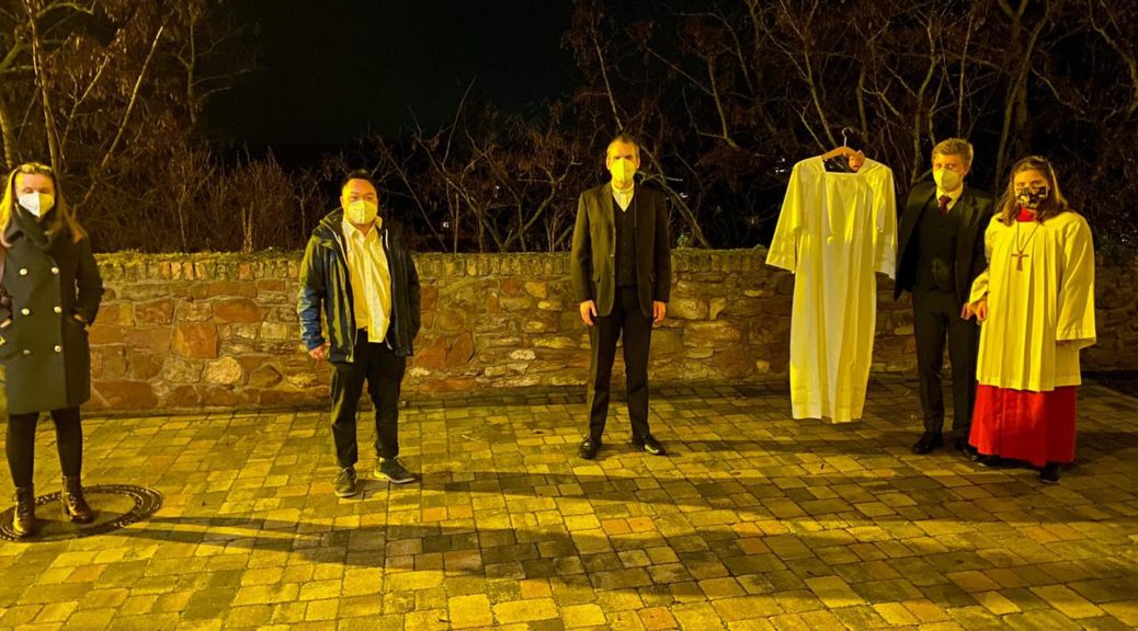 Kurz vor der Christmette haben wir unserem neuen Pfarrer noch ein verspätetes Willkommensgeschenk überreicht. Zum Anlass seiner Einführung haben wir der Pfarrkirche St. Gereon in Nackenheim eine neue Albe gestiftet, die gestern feierlich eingeweiht wurde. Jetzt hat der Pfarrer während den Gottesdiensten kein Hochwasser mehr ;)