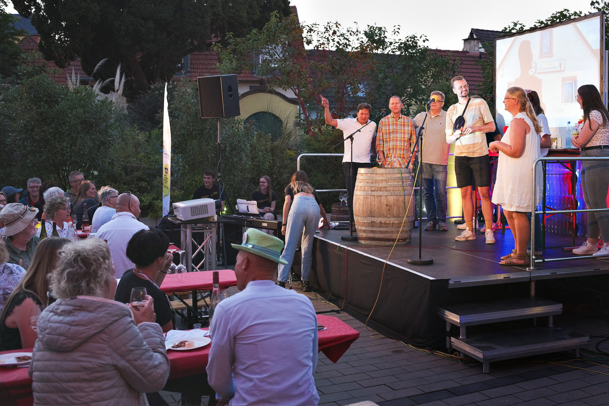 In diesem Jahr warteten wir mit einer Premiere auf. Nachdem unsere beiden Fastnachtssitzungen im Februar der Pandemie zum Opfer gefallen waren, haben wir am 15. Juli 2022 eine Weinprobe im Hof des Weinguts Gunderloch veranstaltet.