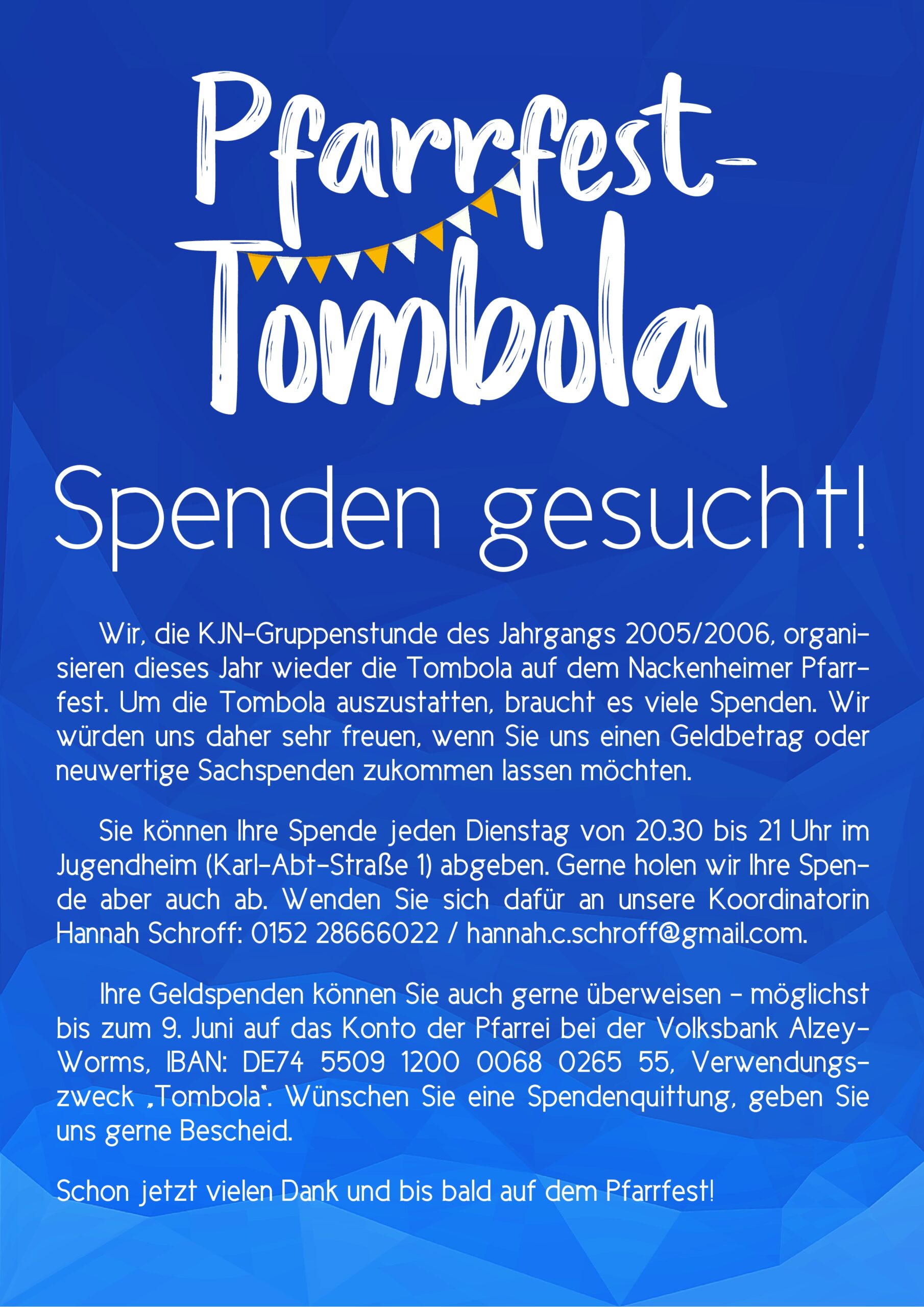 Um die Tombola auszustatten, braucht es viele Spenden. Wir würden uns daher sehr freuen, wenn Sie uns einen Geldbetrag oder neuwertige Sachspenden zukommen lassen möchten