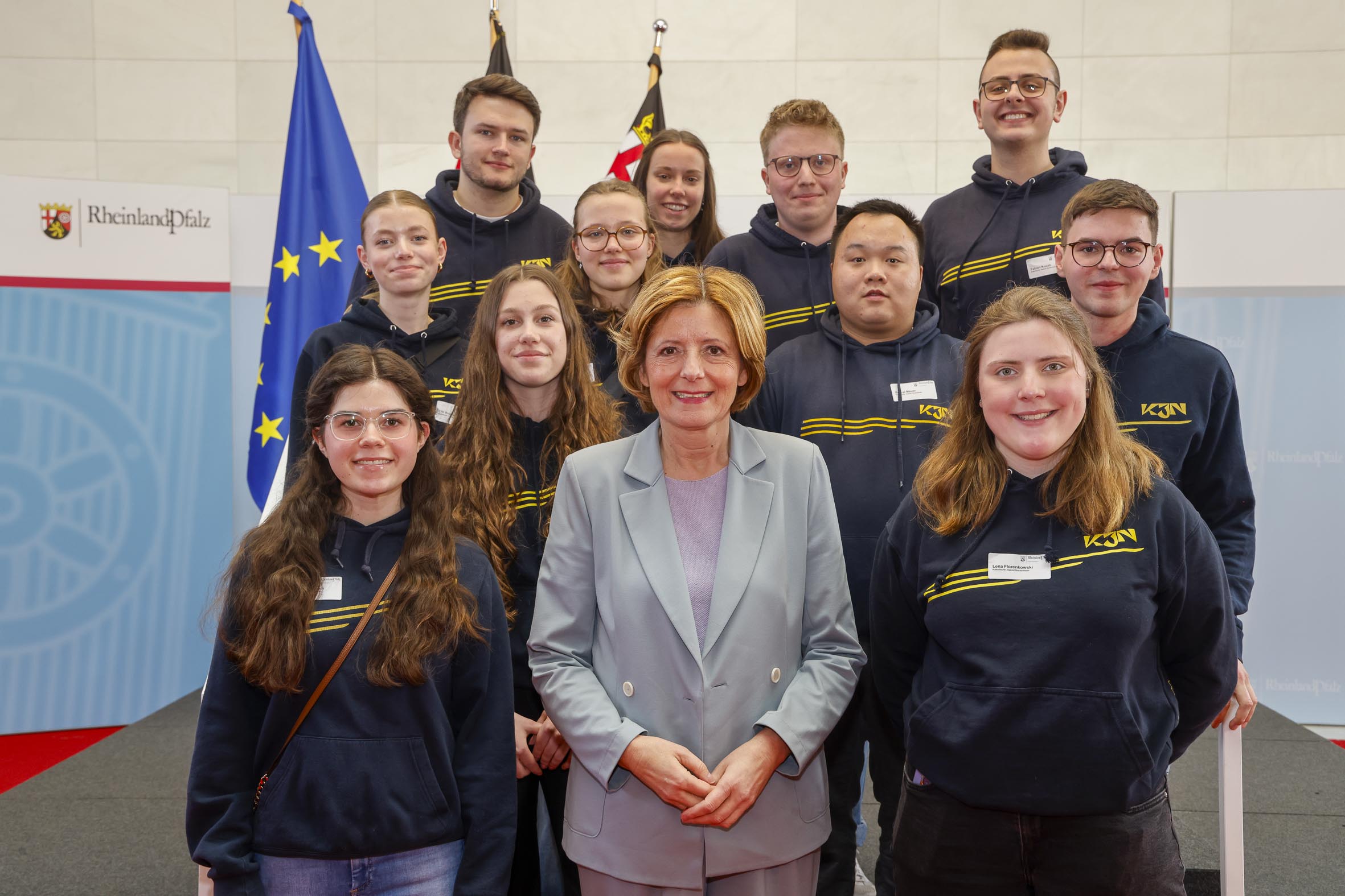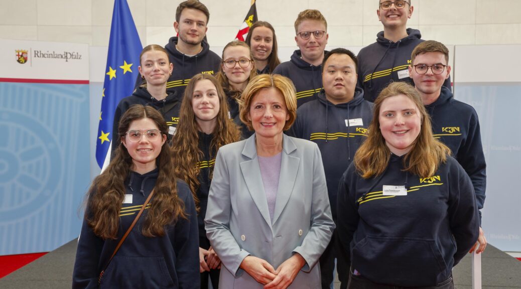 Jährlich empfängt die Ministerpräsidentin von Rheinland-Pfalz ausgewählte Bürger:innen in der Staatskanzlei, um sie für ihr Engagement zu ehren und sich zu bedanken. Dieses Mal waren verschiedene Gruppen der Kinder- und Jugendarbeit eingeladen – darunter die KJN. Diese Chance wollten wir uns selbstverständlich nicht entgehen lassen. Daher kam eine kleine Gruppe der Einladung nach und durfte einen Tag in der Staatskanzlei verbringen.